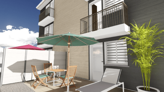 Amarello est une petite copropriété de 6 logements de type T3 articulés autour de la pièce à vivre, de la cuisine et d’une spacieuse terrasse couverte.